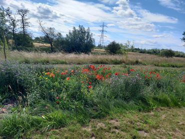 Part of the grassland has been planted at wide spacing with individual standard trees to create a parkland feature. A new pond has been created and an area of traditional grassland created for the benefit of wildflower species. Rare native black poplar have been planted to help preserve this species.